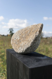 Im Gestein hat sich der gesamte Kosmos abgebildet und führt uns unmittelbar in den Ursprung unseres Sonnensystems, der Sternenentwicklung vor 5 Milliarden Jahren. Diese Skulptur ist ein Segment aus dem Planeten Erde. Die in die Höhe gereckte Spitze weist auf den Kosmos. Der Bogen, auf dem die Form aufliegt, ist gleichbedeutend mit dem Horizontbogen der Erde in der Umkehrung von „Unten und Oben“.